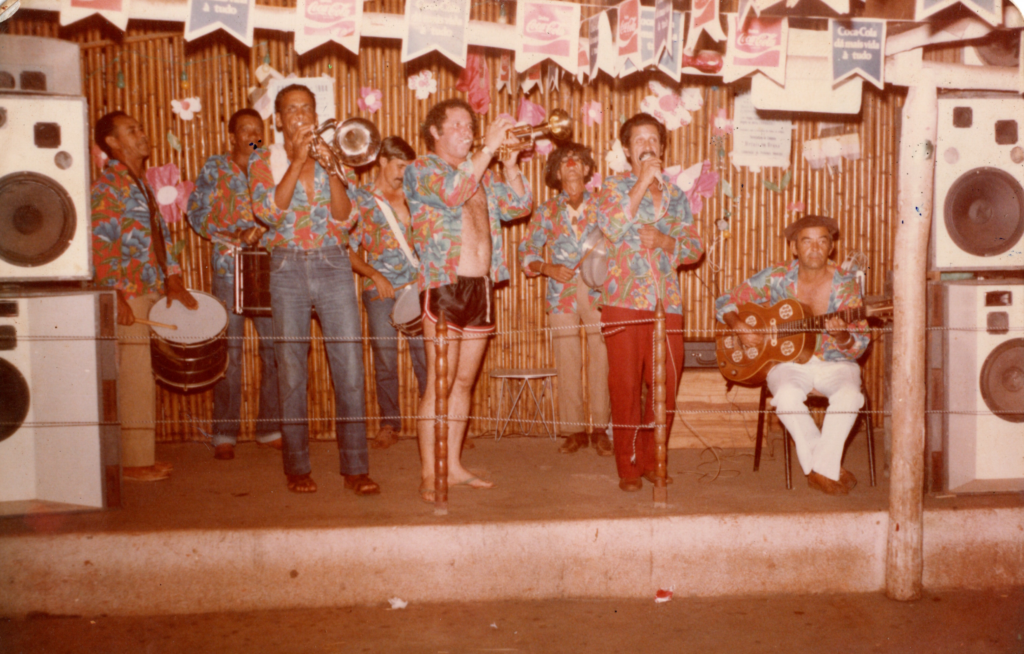 A ocasião: carnaval da época, com os músicos vestidos com camisas estampadas